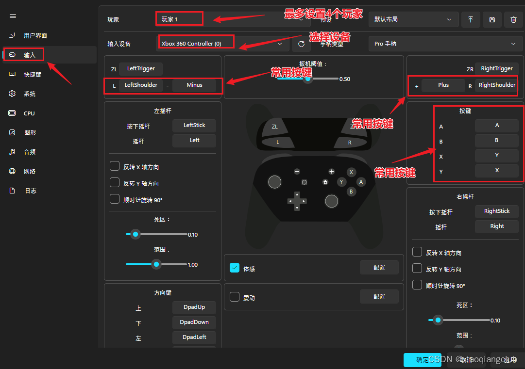 超级马里奥兄弟惊奇支持本地最多同时4个玩家,游戏中常用的按键为A、B、L、R4个按键,玩家可以根据自己的操作工具进行映射,如果是多个玩家需要进行依次映射!